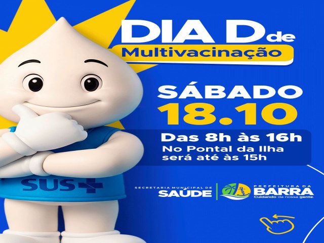 A Prefeitura de Barra dos Coqueiros, por meio da Secretaria Municipal de Saúde, realiza neste sábado, 18, o Dia D de Multivacinação. A ação tem como objetivo atualizar as cadernetas de vacinação, com foco especial nas crianças e adolescentes menores de 15 anos, reforçando o compromisso do município com a prevenção de doenças e a promoção da saúde pública.